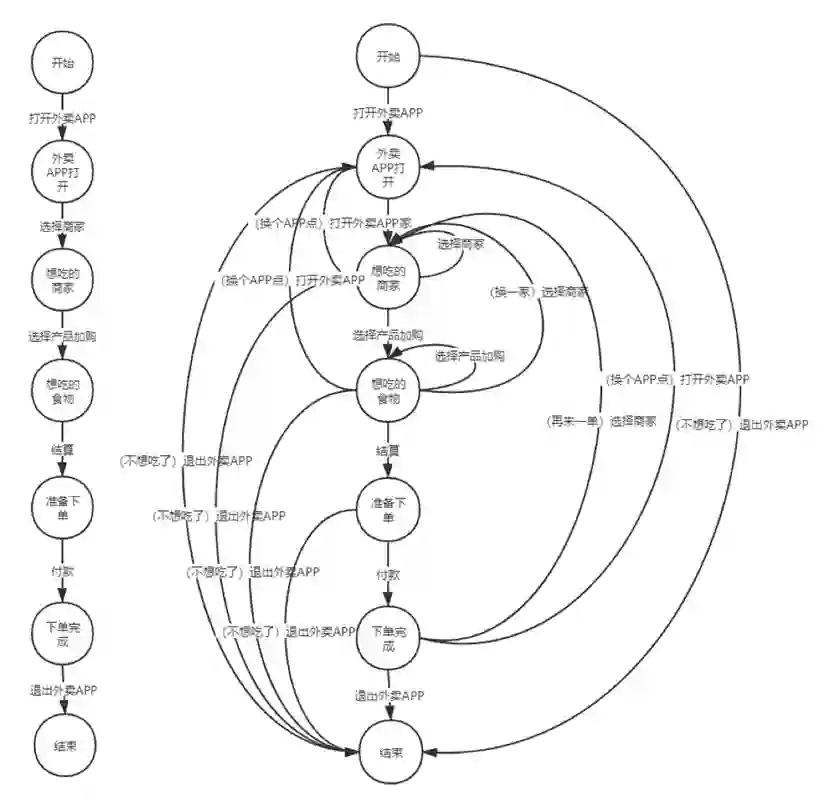 比如下图,实际流程和标准流程并完全重合,会出现很多变体。这些变体体现的不合理流程,会使得时间边长、效率变低,甚至订单取消。