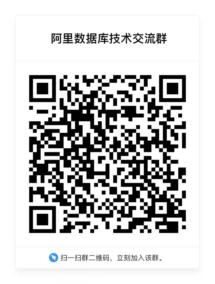 我们建了一个数据库技术交流群,欢迎从事数据库行业的同学加入。这里只聊技术,不谈别的。在钉钉搜索群号:23124548,或者用钉钉扫描下方二维码,即可加入,与阿里数据库技术团队、行业同仁交流、探讨。