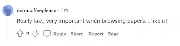 「真的很快!看论文的时候有这个东西太666了。我很喜欢!」。