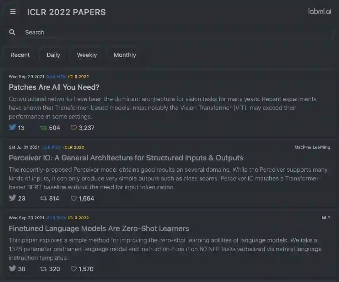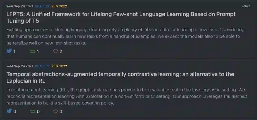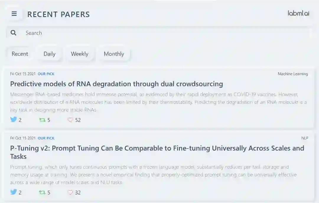每篇论文都统计了相关的推文数、转发数和点赞数,以便用户可以过滤掉随机论文。