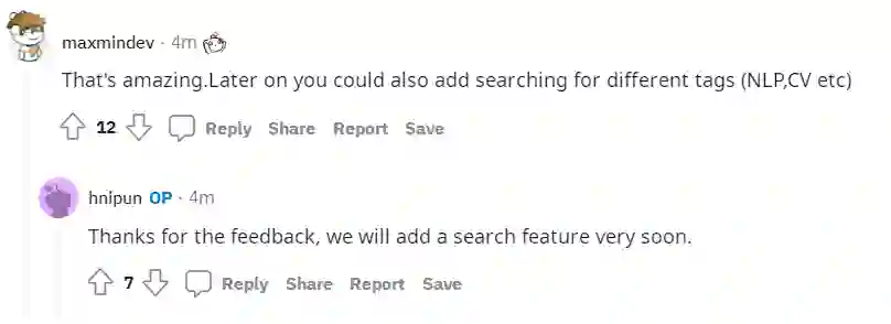 「很棒的工作!之后能不能添加一些不同的标签(如NLP,CV)来方便搜索呢?」