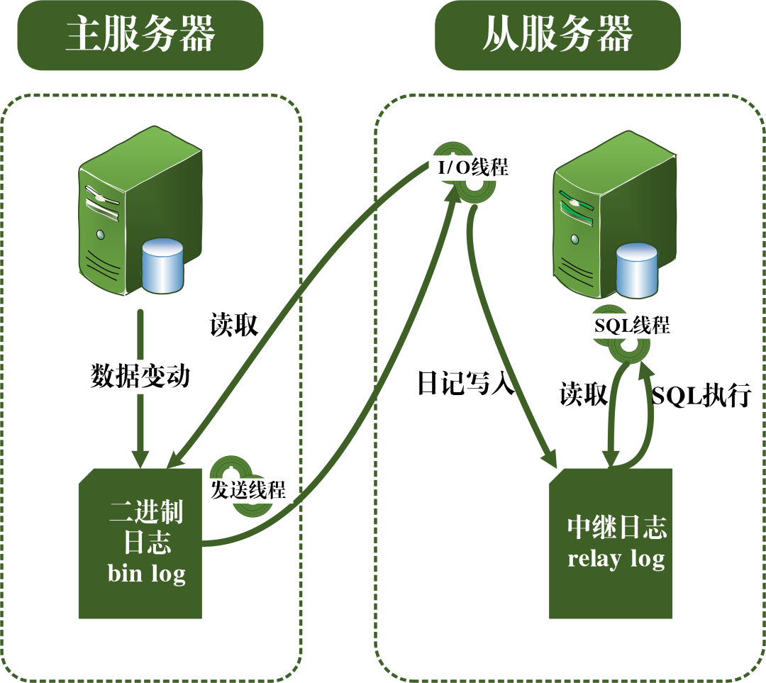 主从复制的原理实际上就是通过bin log日志实现的。bin log日志中保存了数据库中所有SQL语句,通过对bin log日志中SQL的复制,然后再进行语句的执行即可实现从数据库与主数据库的同步。