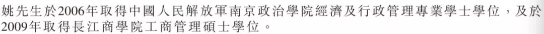 一份发布自2017年6月的瑞慈医疗(01526.HK)公告披露了姚其湧更详细的官方个人履历。姚其湧,1964年人,自2002年起担任宏兆实业董事会主席,2006和2009年,姚其湧先后获得中国人民解放军南京政治学院经济及行政管理专业学士学位、长江商学院管理学硕士学位。