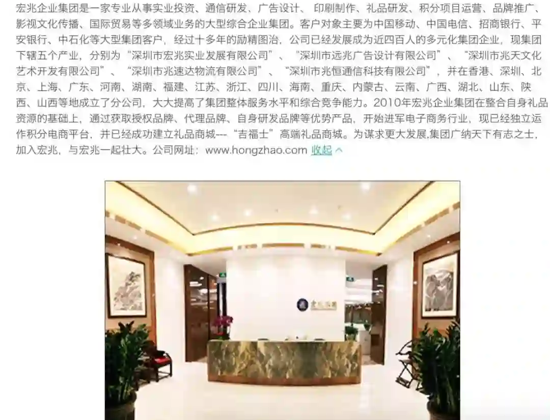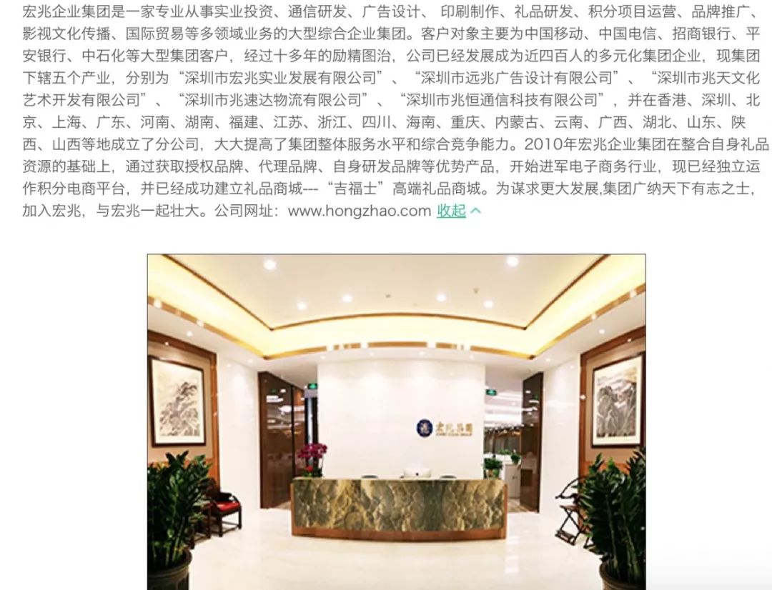 (宏兆实业官网目前无法打开,截图为某招聘网站其公司主页介绍)