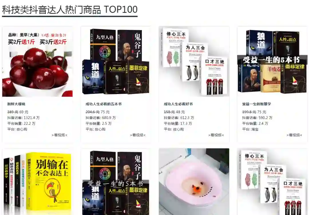 像抖音热门带货数据,在 TooBigdata 上可以免费查看到TOP100 ,做淘客抖音号的朋友,可以多用一用。