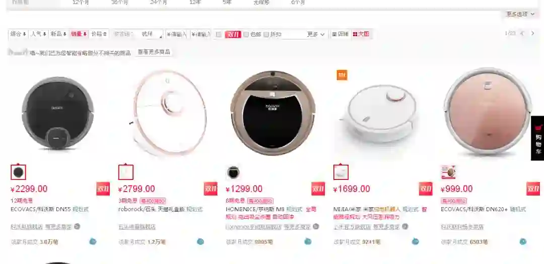 在天猫、京东、苏宁三大平台上牢牢占据线上扫地机器人成交额第一名。