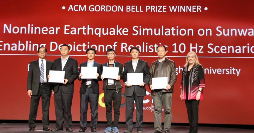 11月17日,在美国丹佛举行的全球超级计算大会(SC2017)上,由清华大学地球系统科学系副教授付昊桓等共同领导的团队所完成的“非线性地震模拟”一举获得国际高性能计算应用领域最高奖“戈登•贝尔”奖(ACM Gordon Bell Prize。