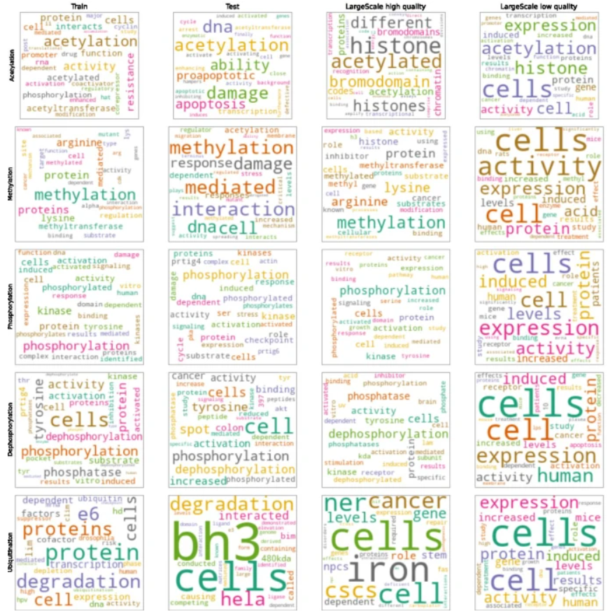 研究人员专注于提取 PTM,包括磷酸化、去磷酸化、甲基化、泛素化、去泛素化和乙酰化(这些 PTM 是根据训练数据的可用性选择的)。他们使用远程监督方法创建一个训练数据集,使用 IntAct 作为源知识库从 PubMed 摘要中提取 PTM-PPI 三元组。