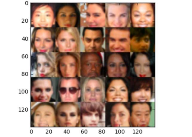 不过,尽管如此我们也要定义一个批量生成的函数。这个函数将加载我们的图像,并根据我们稍后将要设置的批量大小给我们一个图像阵列。为了获得更好的效果,我们将裁剪图像,以便只显示脸部。我们还将图像归一化,使得它们的像素值在-0.5到+0.5的范围内。最后,我们打算将图像缩小到28x28。这困难会使我们失去了一些图像质量,但它大大减少了训练时间。