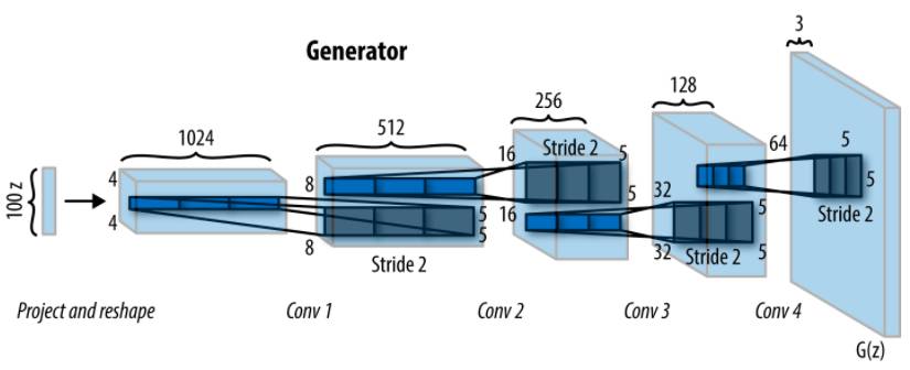 我们将使用原来的非深度卷积生成对抗网络的无监督表示学习的DCGAN体系结构,它由四个卷积层作为鉴别器,四个解卷积层(反卷积层)作为发生器。