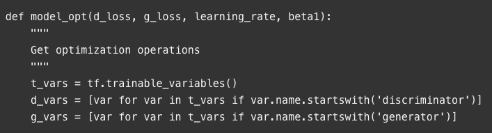 我们需要定义三个损失函数,而不是仅具有单个损失函数:发生器的损失函数,使用真实图像时鉴别器的损失函数,以及使用假图像时鉴别器的损失函数。假图像和真实图像损失的总和理应是整体鉴别器损失。