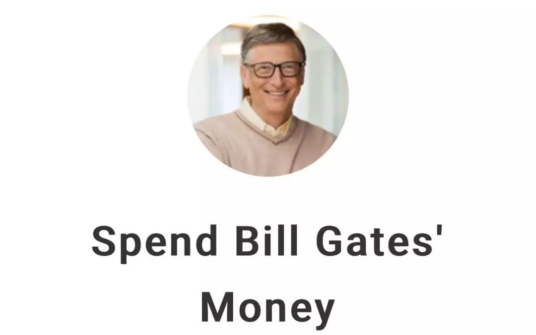 国外的一位网友更是身体力行,开发出了一个 叫做「花光比尔盖茨的钱」(Spend Bill Gates' Money)的网站。