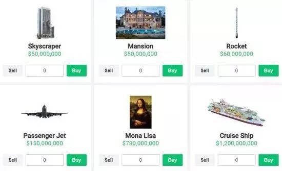 在这个网站上你可以任意「购买」摩天大楼、火箭、豪宅、名画《蒙娜丽莎的微笑》统统都能买。