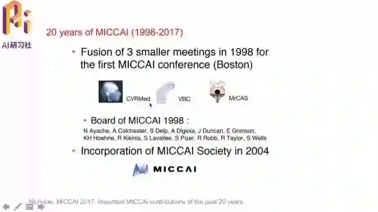 MICCAI 最初是在1998年由三个小会议CVRMed、VBC、MrCAS组成的。2004年时MICCAI Society正式成立。