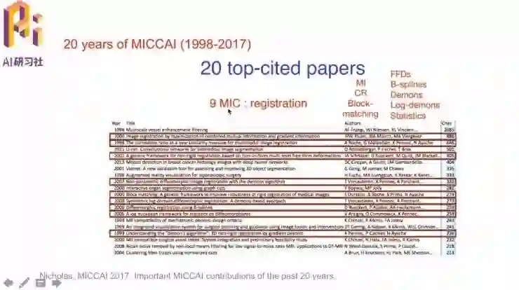 回顾MICCAI过去20年中被引量最高的文章,有7篇文章是分割和检测,2015年的U-Net大家也都很熟悉了。