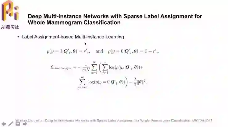 对于有多个区块是阳性的情况,就很自然地可以想到标签设定(Label-assignment)损失,选取出k个正例、其余为负例,然后通过损失函数训练网络。损失函数里同样包含了权重的惩罚项。这种损失逻辑上似乎更合理,但具体计算时如何为不同的图像选取适合的k值是一个问题。