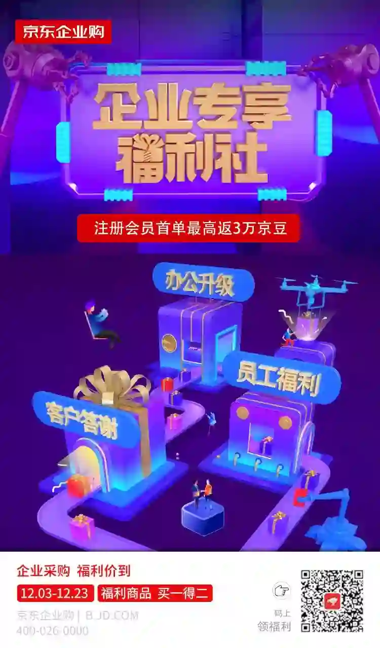 而且,12月3日至12月23日,京东企业购推出以“企业采购 福利价到”为主题的企业采购促销盛会,覆盖员工福利、客户答谢、办公升级年末三大福利采购场景的五大专场活动相继上线,帮助年底有采购需求的企业用户精挑细选推荐好物。