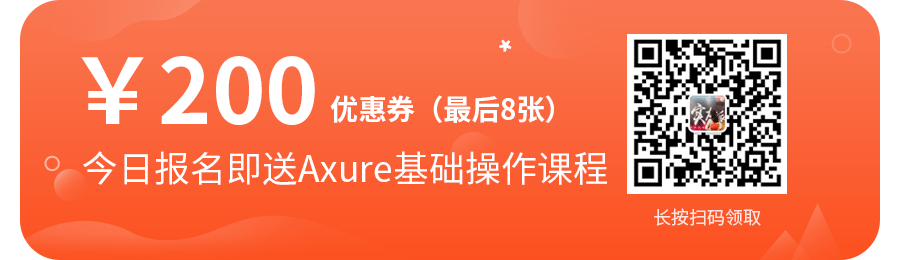 现在报名可享受团购立减200元!团购名额仅剩最后8个!现在报名还可获赠价值¥199的Axure基础操作课程,配套学习更加高效!