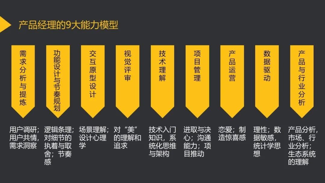 这里总结了关于产品经理的9大能力模型,供大家体系化的学习参考。戳大图,一项一项的匹配学习,一步一个脚印,踏实地把坑补完。