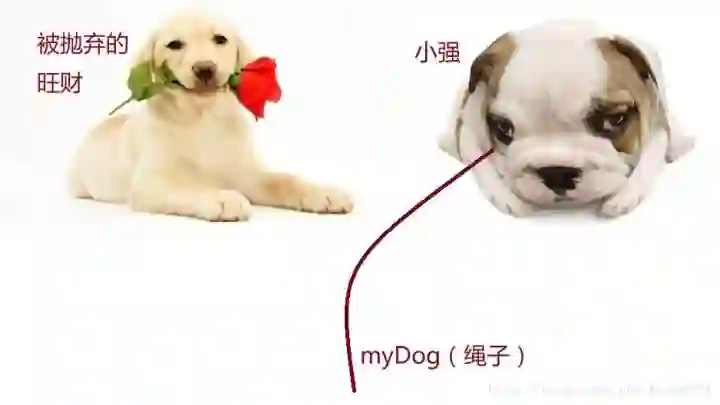 首先你要搞懂,代码里的变量myDog是什么?myDog真的就是一只狗吗?不!不是!myDog只是一条遛狗用的狗绳!
