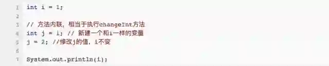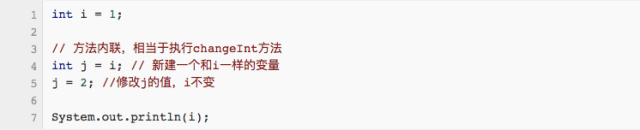 上面提到的参数传递过程中的复制操作,说白了,就是 = 操作。把上面那个int例子,做一下方法内联,其实就是这样: