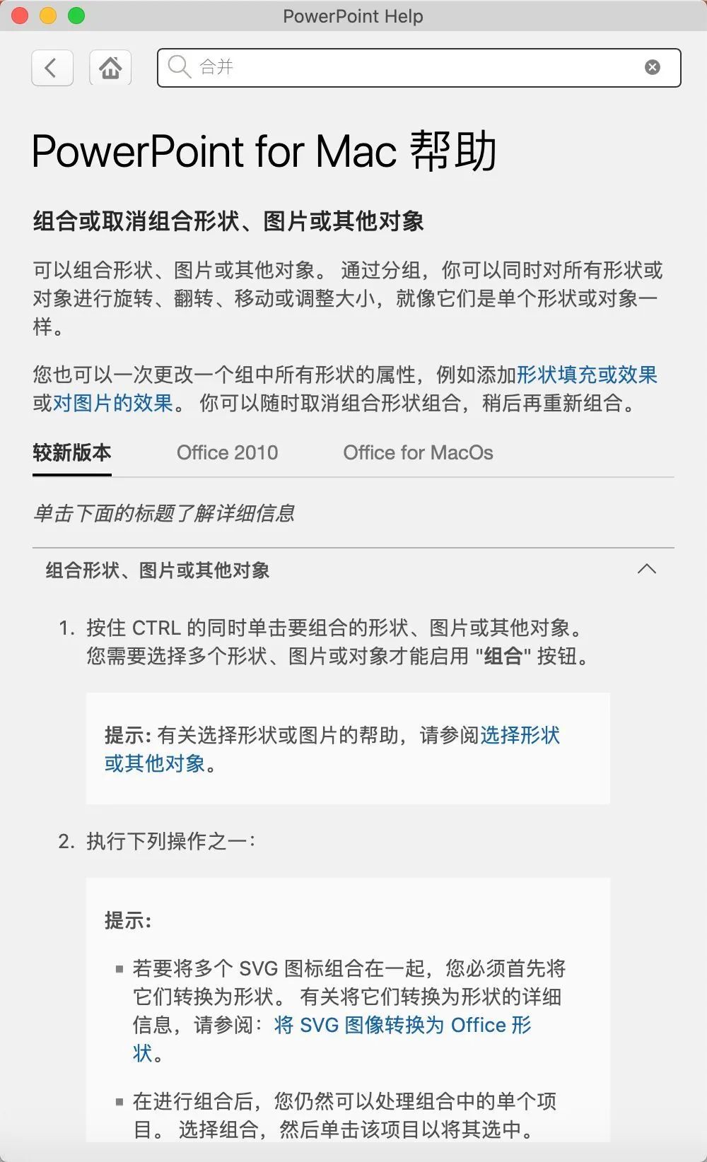 ↑ PPT 的「帮助」里就有很多具体的操作指引