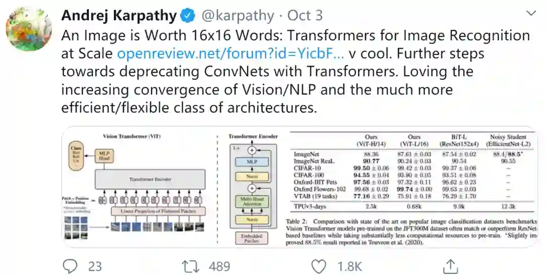 在推特上,斯坦福大学CS博士、特斯拉AI总监 Andrej Karpathy转发了该论文,并表示[乐意见到计算机视觉和NLP领域更高效/灵活的体系结构的日益融合]。