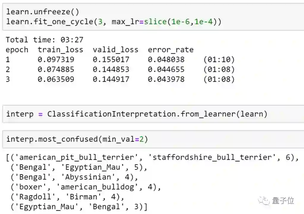 我们将看到如何分析模型以了解其失效模式。在这一部分,我们会发现模型出错的地方与宠物育种专家可能犯错的地方相同。