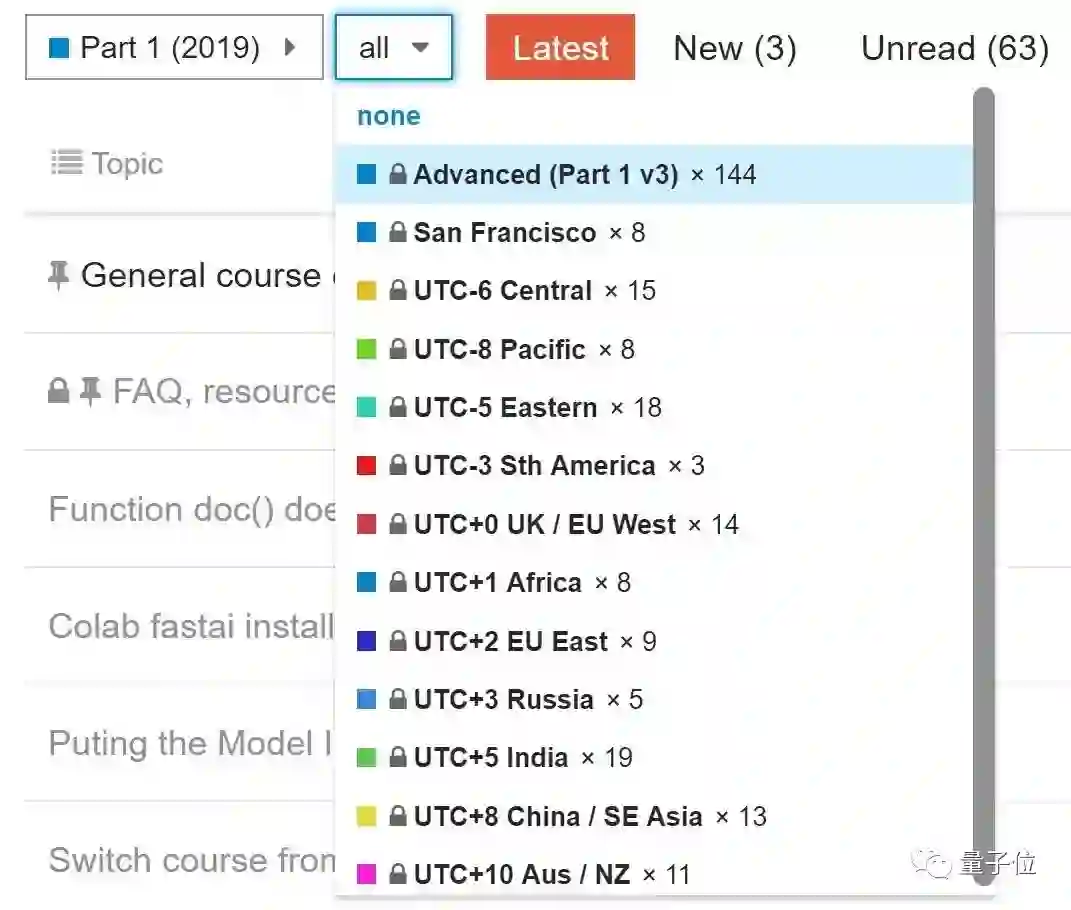 Jeremy介绍说,他们为课程论坛添加了新功能,能按照时区、地点、语言给话题分类,想创建或者寻找同一地区、用母语讨论的学习小组更容易了。