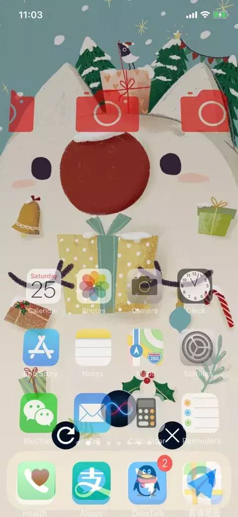 在发布会上,老罗演示了上移手机自拍和下移手机打开地图的功能,为了还原这一功能,笔者将上述操作获取的桌面截图desktopImage进行了二次处理,利用CoreGraphics在图片上方绘制一个topImage,下方绘制一个bottomImage,topImage的内容为一排相机Icon,bottomimage的内容为一排地球Icon,要实现图片拼接,需要开一个更大的图形上下文,然后依次将图片渲染到指定位置,完整代码如下。