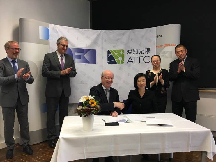 不到两个月后的7月11日, AITC和DFKI达成战略合作,锋创科技园董事长张寒燕和DFKI的CEO沃夫冈·瓦尔斯特尔(Wolfgang Wahlster)在德国进行了签约仪式——未来, DFKI中国区的所有合作项目都通过AITC来实现。