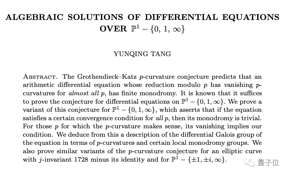 2011年从北大数院本科毕业后,她前往哈佛大学攻读博士学位。在Mark Kisin指导下完成了博士论文:在所有有限位置的特定收敛条件证明了Grothendieck—Katz p-curvature猜想的一个变体。