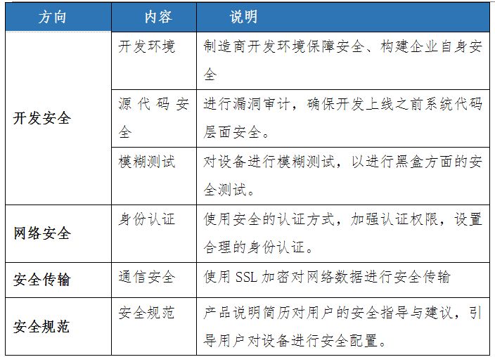 而对于摄像头制造商来说,除针对摄像头的设备的特点进行针对性防护外,还需要在整个业务系统从研发、上线、报废的生命周期内实施生命周期的安全管理。确保安全管理体系可以覆盖业务节点,实现及时发现每一环节中引入的漏洞等安全问题。
