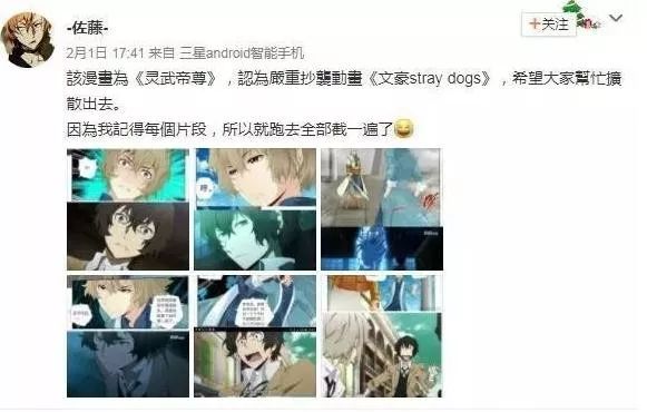 2018年2月有网友在微博上指出,当时正在连载中的国产漫画《灵武帝尊》有抄袭日本动画《文豪野犬》的嫌疑。