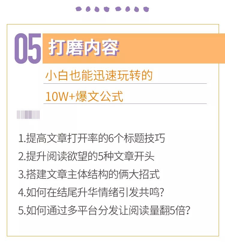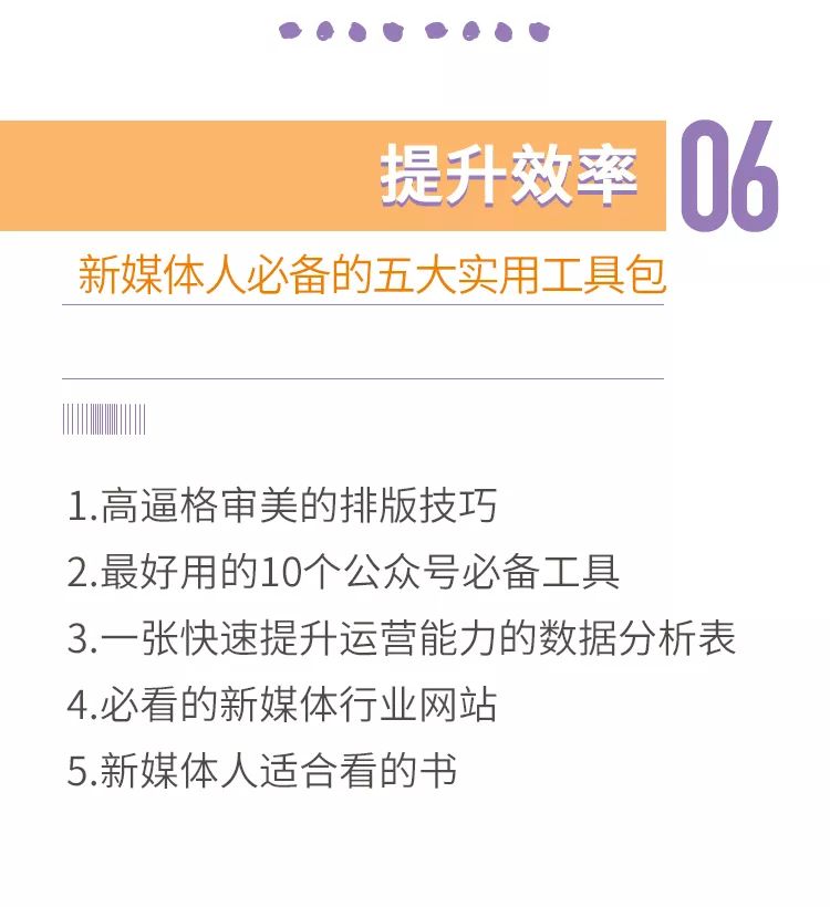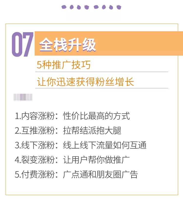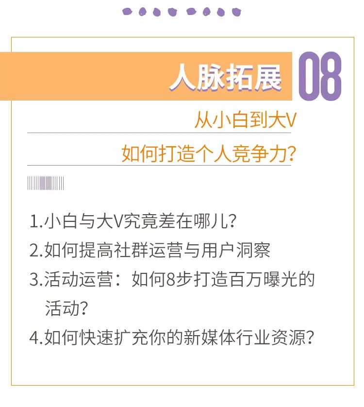 拇指君把这些经验和方法,按照专业的课程研发方式,梳理成了8个板块,共40个大的知识点,包含了一个人从小白到大V需要掌握的所有技能。