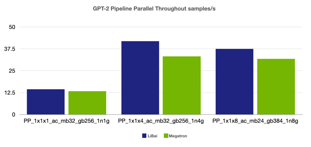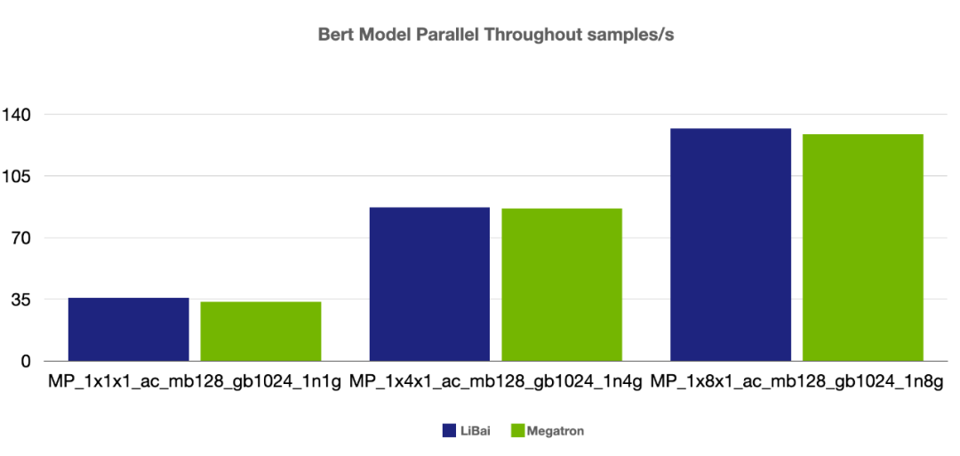 在 Bert、GPT-2 模型上,LiBai 的训练速度全方位超过 Megatron-LM。