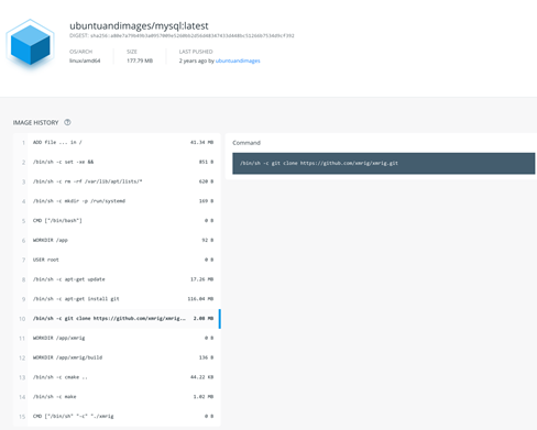 示例:一个在Dockerhub中伪装成mysql的恶意镜像,同时携带了挖矿程序: