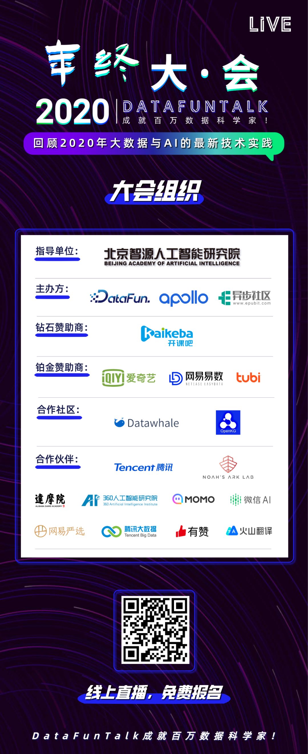 导读:12月19-20日,9:00-17:40,一年一度的 DataFunTalk 年终大会来啦!受疫情影响,以及为了惠及全国各地的小伙伴,本次大会将继续在线上召开,将有超过90位嘉宾,参与本届大会,下面一起和小编了解下吧: