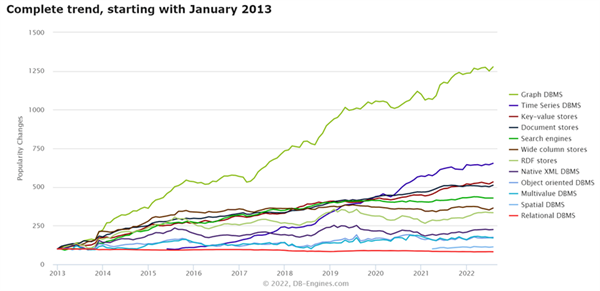 图|各类数据库近十年来热度变化(来源:DB-Engines.com)