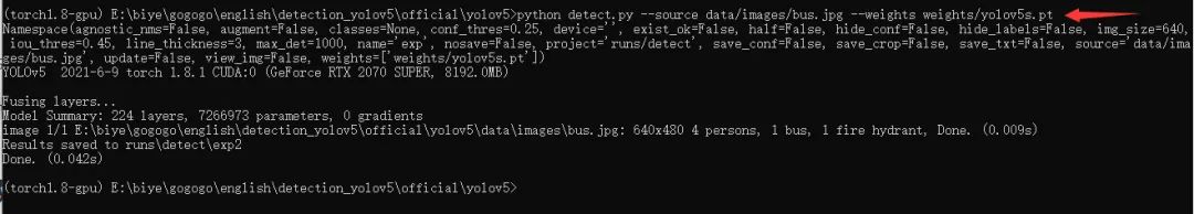 python detect.py --source data/images/bus.jpg --weights pretrained/yolov5s.pt