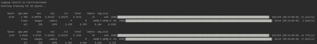 训练代码成功执行之后会在命令行中输出下列信息,接下来就是安心等待模型训练结束即可。