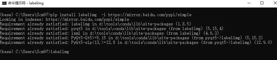 pip install labelimg -i https://mirror.baidu.com/pypi/simple命令进行安装,然后在命令行中直接执行labelimg软件即可启动数据标注软件。