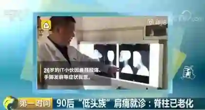 广州一90后一名IT小伙因颈椎病突然发作,手脚发麻浑身不适就医,被诊断出脊椎老化。