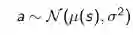 行为对应于一个具体的数值,该数值从以μ(s)为均值、σ为标准差的高斯分布中随机采样产生: