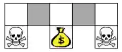 再举一个例子:在下图的格子世界中,个体需要避免碰到骷髅而尽可能找到钱袋子。在上方的5个格子组成的“长廊”中,当以某些对个体来说较容易观测的特征来描述状态空间时,灰色的两个格子将会是无法区分的。