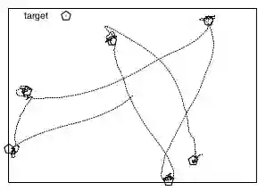 Puck世界还有很多变种,例如在世界里再增加一个惩罚目标,个体需要在躲避该目标的同时尽可能接近要靠近的目标(请参考这里)。