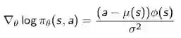 使用高斯策略时,我们通常对于均值有一个参数化的表示,同样可以是一些特征的线性代数和: