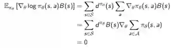 其基本思想是从策略梯度里抽出一个基准函数B(s),要求这一函数仅与状态有关,与行为无关,因而不改变梯度本身。 B(s)的特点是能在不改变行为价值期望的同时降低其Variance。当B(S)具备这一特点时,下面的推导成立: