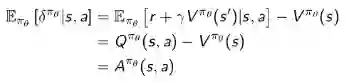 这样得到的TD误差是advantage函数的无偏估计,这同样是根据行为价值函数的定义推导成立的,即: