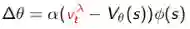 实际运用时,我们使用一个近似的TD误差,即用状态函数的近似函数来代替实际的状态函数: